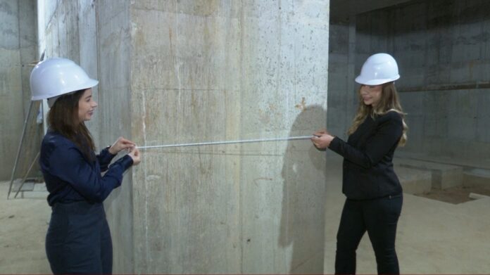 “O concreto, nessa obra, tem um controle rigoroso. Ele precisa ser denso; tem uma densidade mínima que ele precisa atingir para a radiação ‘bater’ na parede e ficar dentro da sala, não sair”, explica Julia Senger Marin, uma das engenheiras civis que integram a equipe responsável pela obra.
