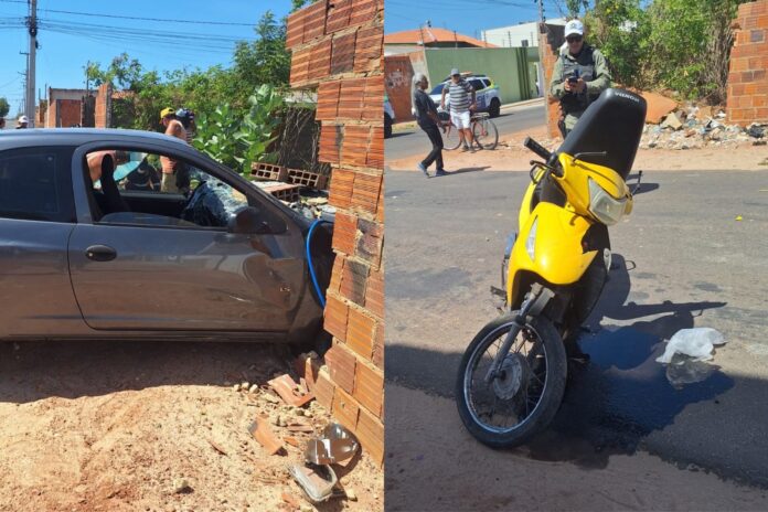 Um acidente entre carro e moto deixou três feridos na manhã desta quarta-feira (29) no bairro Planalto, em Parnaíba, no litoral do Piauí. Após a colisão, o carro derrubou o muro de uma casa próxima ao local.