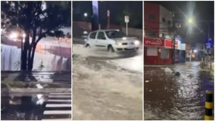 Na rotatória do Cristo e na Avenida Tancredo Neves também foram registrados alagamentos, assim como na região do Mercado Municipal, no centro da cidade.