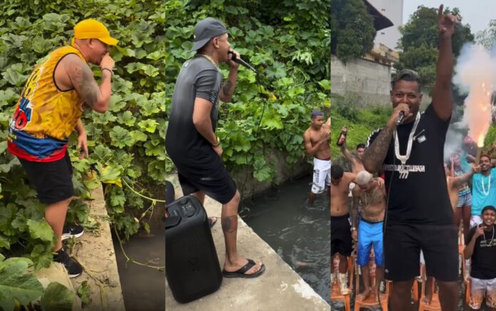 MCs Cego, Elvis e Vertinho em show em canal de esgoto no Recife