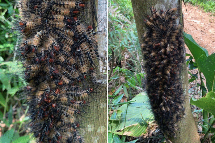 “Lindo e perigoso aglomerado de lagartas”, afirmou o biólogo Bruno Lourenço ao publicar o registro nas redes sociais nas últimas semanas.