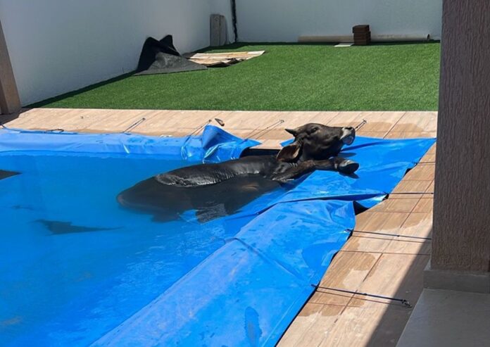 Um boi caiu dentro da piscina de uma residência em Grossos, na região da Costa Branca potiguar, no final da manhã desta quarta-feira (29). O caso inusitado aconteceu depois que o portão da casa ficou aberto por alguns minutos.