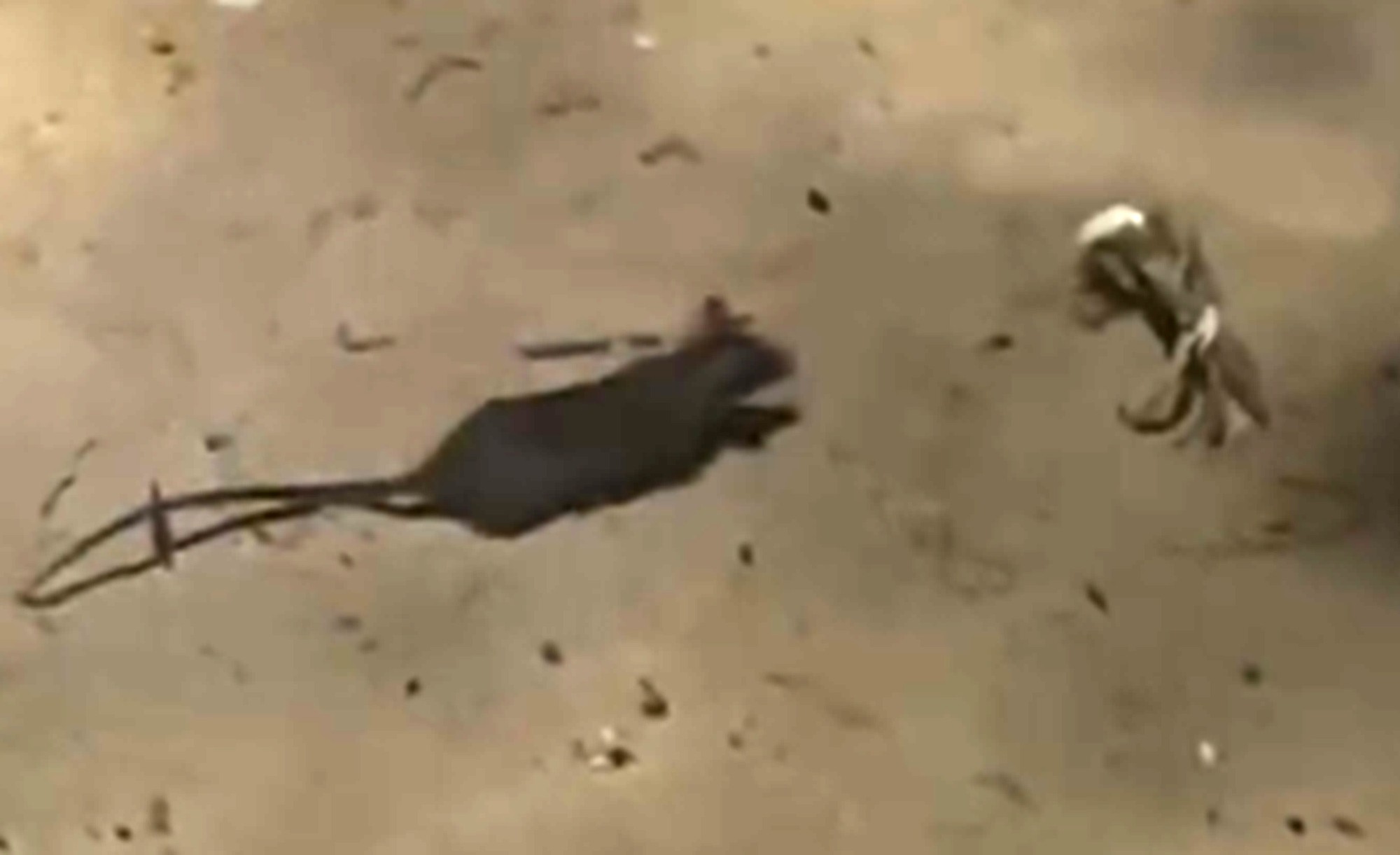 Rato e maria-farinha brigando na Praia de Boa Viagem, na Zona Sul do Recife