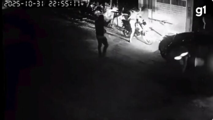 Pelas imagens registradas pelas câmeras, é possível ver que a vítima estava em uma motocicleta junto com outra pessoa em frente a uma casa. Pelo relógio da câmera, o relógio marca às 22h55 quando um veículo e pelo menos quatro homens abordam a vítima, que se deita no chão.