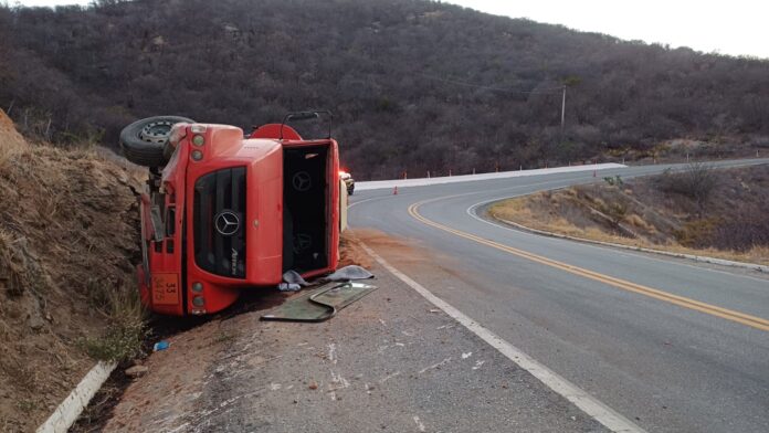 Um caminhão-tanque tombou na madrugada desta quinta-feira (23), na serra de Santa Luzia, no Sertão. O tombamento aconteceu no km 278, da BR-230, sentido Campina Grande.