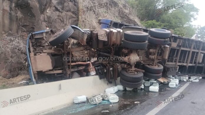 Ainda segundo a informações disponibilizadas pela Artesp, o motorista perdeu o controle da carreta, tombou sobre a faixa 2 de rolamento e se chocou contra a barreira de concreto.