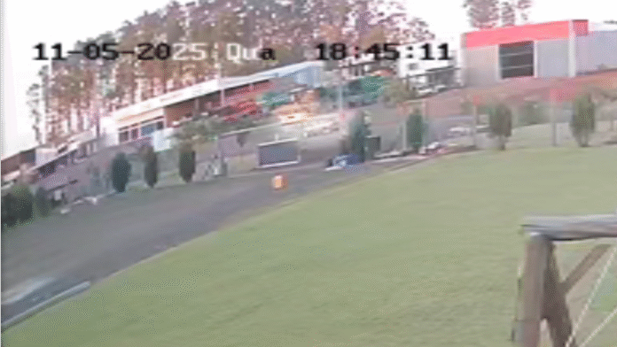 A vítima chegou a ser socorrida, mas morreu no hospital. O acidente foi flagrado por câmeras de segurança.