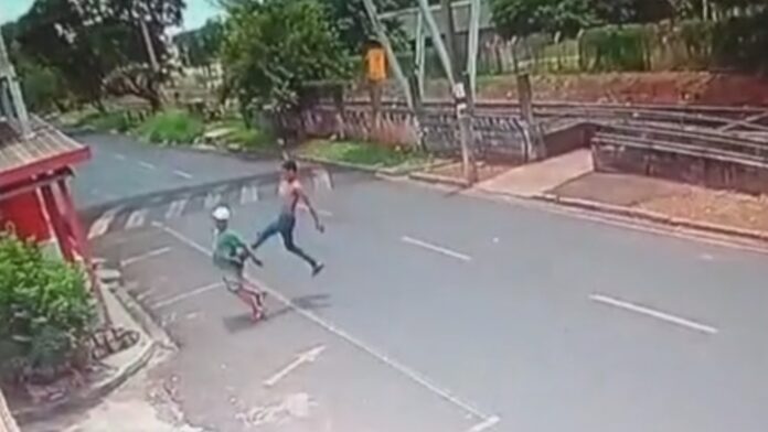 Imagens de câmeras de segurança flagraram o crime. Assista ao vídeo abaixo. A vítima foi socorrida por um familiar e levada para a Unidade de Pronto Atendimento (UPA) Jaguaré, onde recebeu seis pontos na cabeça. Em seguida, recebeu alta médica na manhã de segunda-feira.