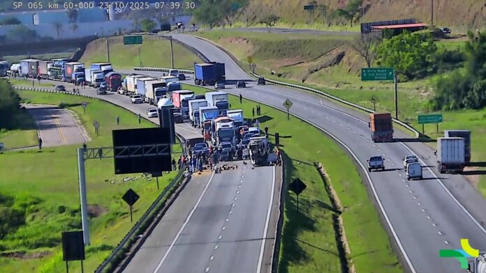 A carga que era transportada pelo carro caiu sobre a pista, que precisou ser totalmente interditada no sentido Campinas, o que gerou congestionamento.