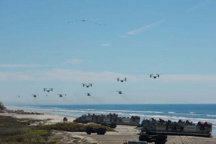 Em homenagem à celebração, caças, helicópteros e navios das Forças Armadas realizaram manobras militares na base da Califórnia. O vice-presidente americano, J.D. Vance, que serviu por quatro anos nos Fuzileiros Navais, participou da cerimônia e fez um discursou.