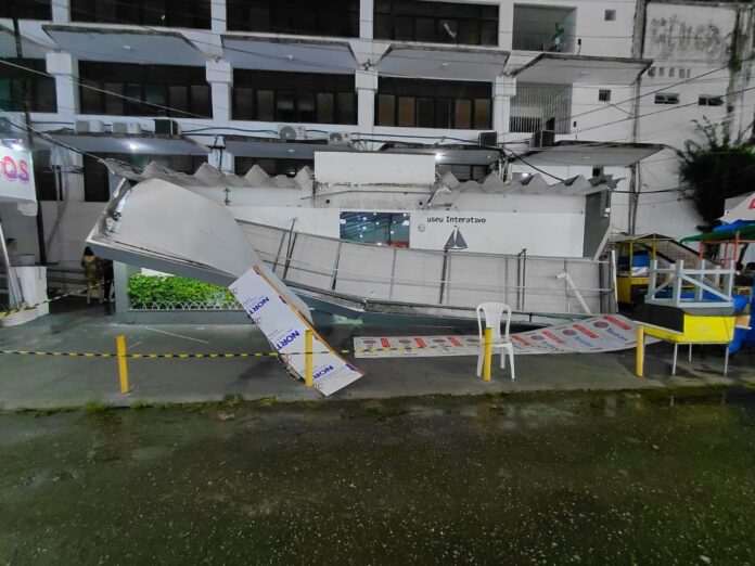 A fachada do Memória de Nazaré, localizado no estacionamento da Basílica Santuário em Belém, desabou na noite desta quarta-feira (29) após a forte chuva que atingiu a cidade.