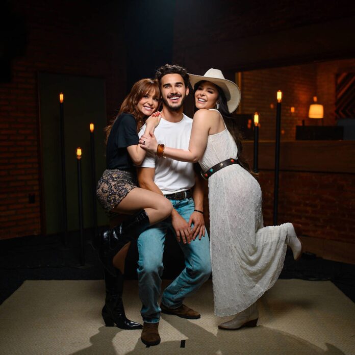 A dupla Maiara e Maraisa posa com o cantor fictício João Raul (personagem do ator Filipe Bragança), com quem gravou o single ‘Fora de compasso’