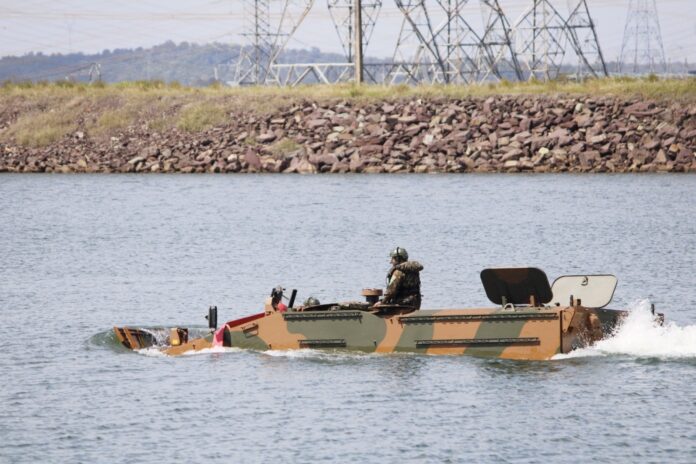 Viatura blindada do Exército, o ‘anfíbio Guarani’.