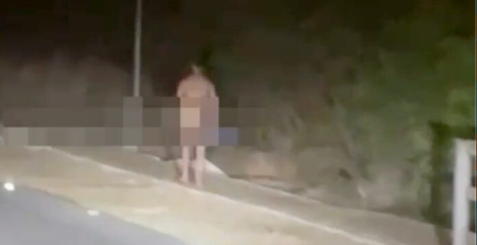 Um homem foi flagrado caminhando completamente pelado na BR-363, em Fernando de Noronha, na noite da segunda-feira (27). O caso aconteceu na área de pedestres da rodovia, nas proximidades do aeroporto (veja vídeo acima). As polícias Militar e Civil investigam a ocorrência.