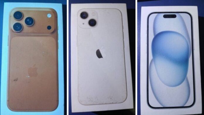 Ao revistar o conteúdo, foram encontrados os 12 telefones em embalagens originais, sem qualquer documentação que comprovasse a origem legal dos produtos.
