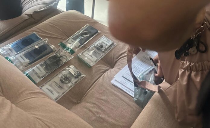 Durante o cumprimento dos mandados de prisão temporária e de busca e apreensão, os policiais apreenderam celulares, um HD externo e dois pen drives, que serão encaminhados para perícia. Parte do material também foi localizado em uma conta do Google Drive do investigado.