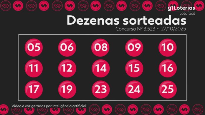Veja abaixo os números do sorteio do concurso 3523 da Lotofácil realizado nesta segunda-feira (27):