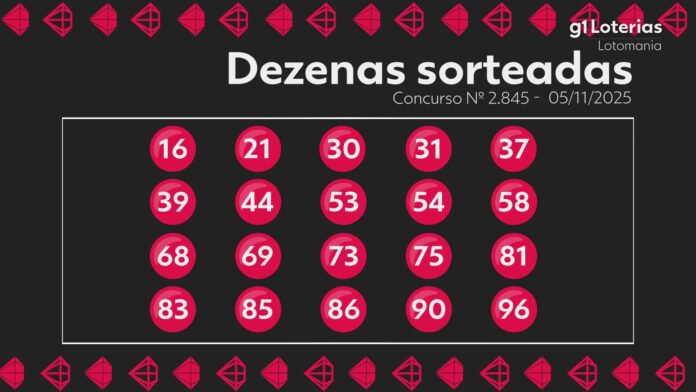 Veja abaixo os números do sorteio do concurso 2845 da Lotomania realizado nesta quarta-feira (5):