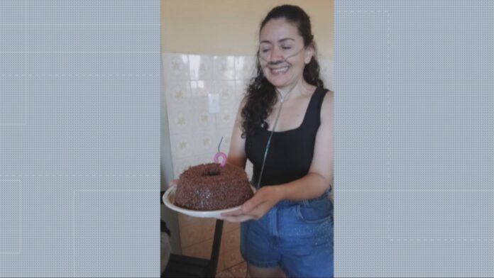 A paciente é Eliene Mota. Ela sentia falta de ar há um certo tempo e foi diagnosticada com uma doença rara, sem cura, chamada linfangioleiomiomatose (LAM), que afeta os pulmões e compromete a respiração.