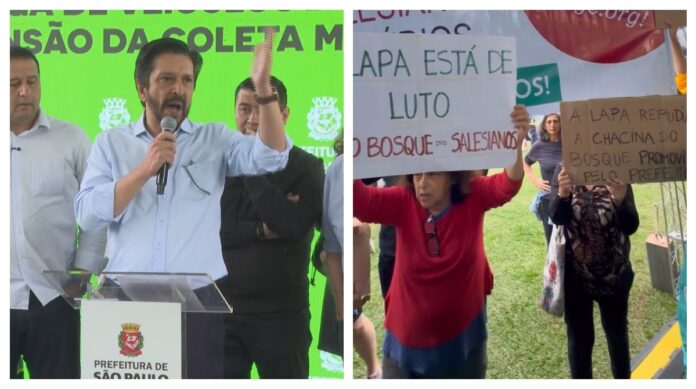 O prefeito de São Paulo, Ricardo Nunes (MDB), foi alvo de um protesto nesta quinta-feira (6) de moradores do entorno do Bosque Salesianos, na Lapa, Zona Oeste de São Paulo, durante uma agenda ambiental no mesmo bairro. O prefeito reagiu e chamou o grupo de cerca de dez pessoas de “baderneiros”, “não civilizados”. A um deles, Nunes se referiu como “babaca” e “idiota”.