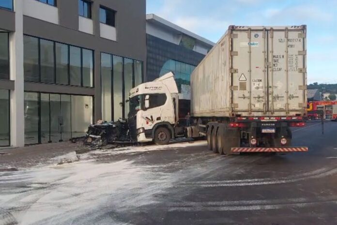 De acordo com o Corpo de Bombeiros, a viatura atingiu a lateral da carreta no cruzamento das ruas Clevelândia e Major Estevão Ribeiro do Nascimento. Em seguida, a carreta ficou em um formato de L e arrastou a viatura por alguns metros.
