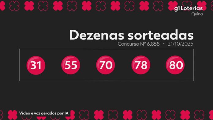 Veja abaixo os números do sorteio do concurso 6858 da Quina realizado nesta terça-feira (21):