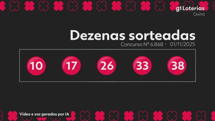 Veja abaixo os números do sorteio do concurso 6868 da Quina realizado neste sábado (1):