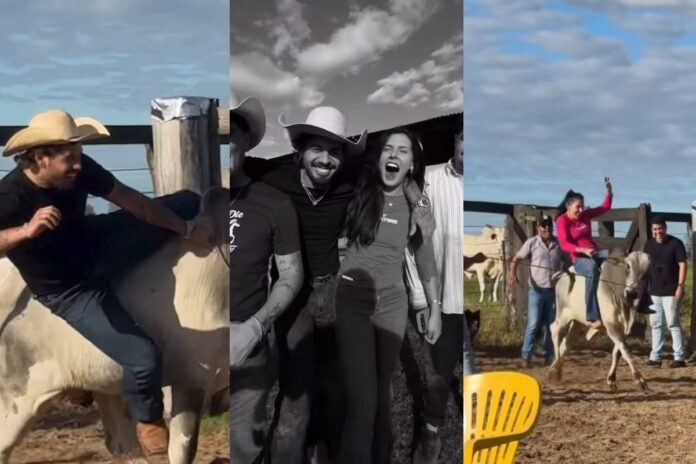 Na competição, o novo casal e os amigos subiram no touro, um a um, para ver quem ficaria mais tempo. No final, a cantora Ana Castela levou a melhor. Todas as cenas foram registradas e compartilhadas nas redes sociais.