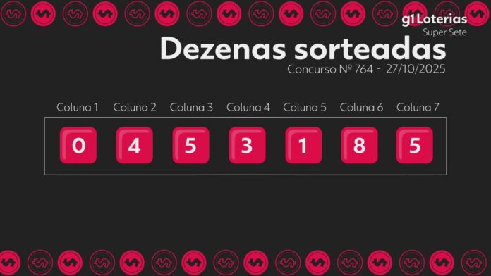 Veja abaixo os números sorteados das colunas no concurso 764 da Super Sete realizado nesta segunda-feira (27):