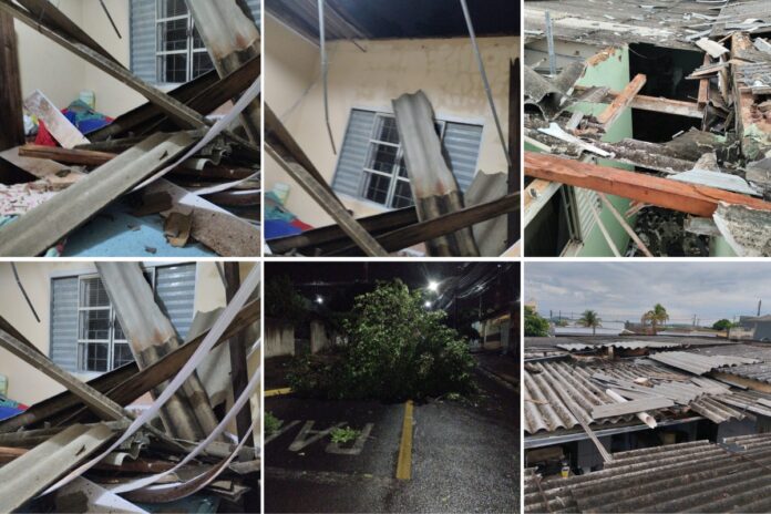 Na Rua Rodolfo Zarros, duas residências tiveram parte do telhado danificado. Em uma delas, onde mora uma idosa de 68 anos, parte da estrutura cedeu logo após ela se levantar da cama ao perceber o aumento da chuva. Ninguém ficou ferido.