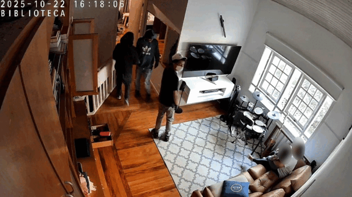 Nas cenas, é possível ver os assaltantes já dentro da biblioteca da casa. Eles abrem armários e reviram objetos enquanto mantêm a babá e a criança sentados no sofá. As vítimas demonstram desespero enquanto são vigiadas. A empregada está com a menina no colo.