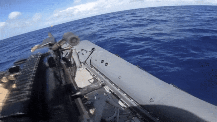 O Comando Sul dos Estados Unidos divulgou na quinta-feira (30) um vídeo que mostra fuzileiros navais realizando operações com fogo real no Mar do Caribe. Nas imagens, eles aparecem atirando com metralhadoras a bordo de um bote. Veja acima.
