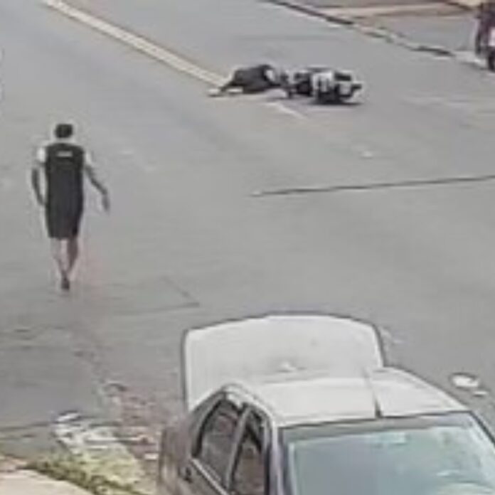 Pouco depois, a moto se enroscou na fiação e a motociclista caiu. Pessoas que estavam na rua prestaram socorro.