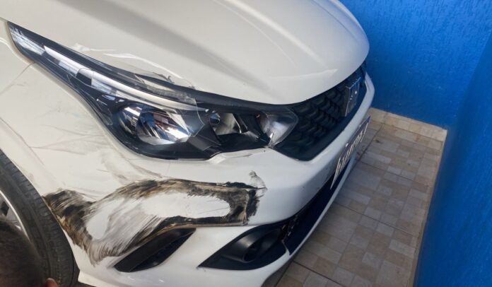 O impacto danificou o para-choque, o farol e o capô do veículo da vítima, mas ninguém ficou ferido. O motorista estava com a esposa dentro do veículo.